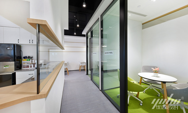 设计团队提出『时光走廊』概念,加入连体卡槽式预埋灯,形成光渠组合,搭配象征理性思维黑色铝制收边条,形成视觉反差,借机营造出的科技所崇尚的未来感。相邻两间洽谈室将过道囊括在中间,形成了一个散发设计感的BOX连接装置。温暖活力的橙色热情跳跃,造成了这一种空间交错感,别致有趣。
