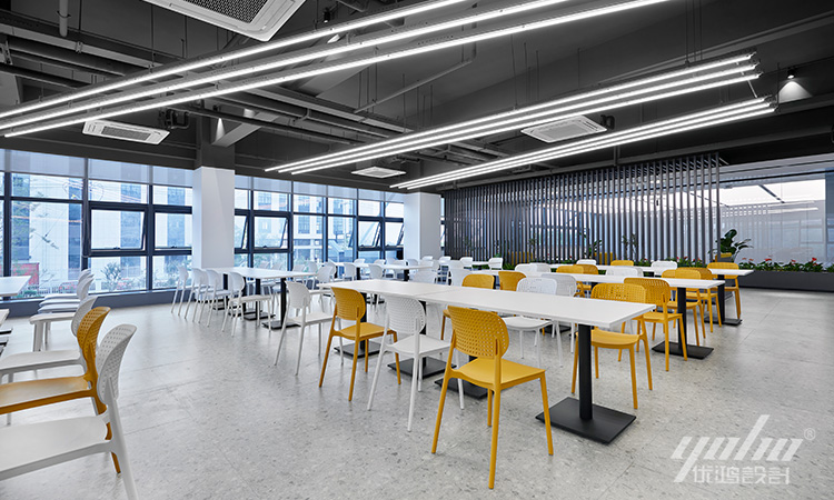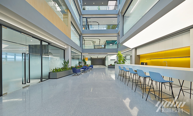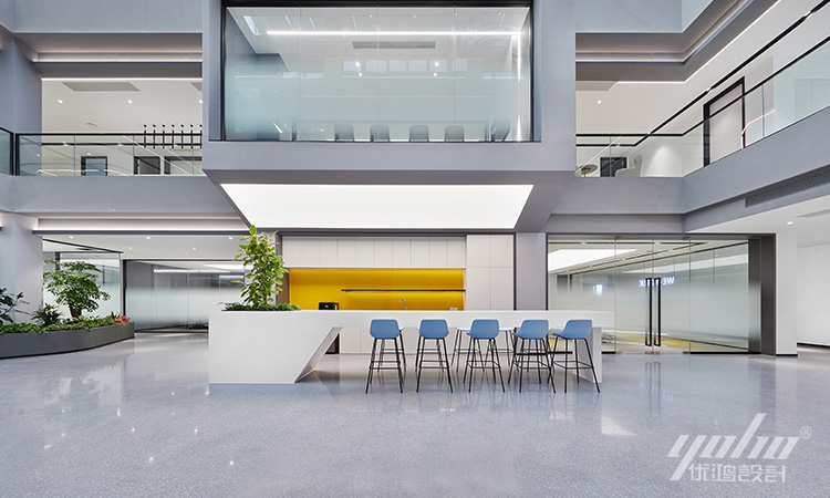 通往各个区域的过道,作为空间之间的连接体,在场域中承载着过渡与起承的作用。有序排列的线条在空中轻盈起舞,增强空间的秩序感,利落的设计语言表达,让空间更加简洁明亮。